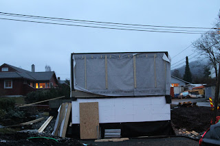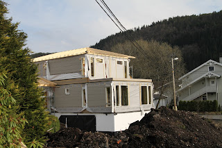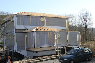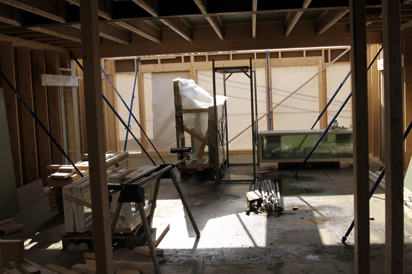 Marte ringte meg i 9 tiden og sa at de var i gang, og siden jeg gikk glipp av at første etasje ble heist på plass tenkte jeg at jeg absolutt ikke måtte gå glipp av andre også. Men jeg kom meg ikke fra jobb før nærmere klokken 10, og da var det allerede for seint. Klokken 10.03 kom jeg inn på plassen, men da var allerede hele andre etasje på plass og det var verken noen heisekran eller noen arbeidere der. Så da gikk jeg glipp av andre etasje også, og det var bare til å returne til jobben.