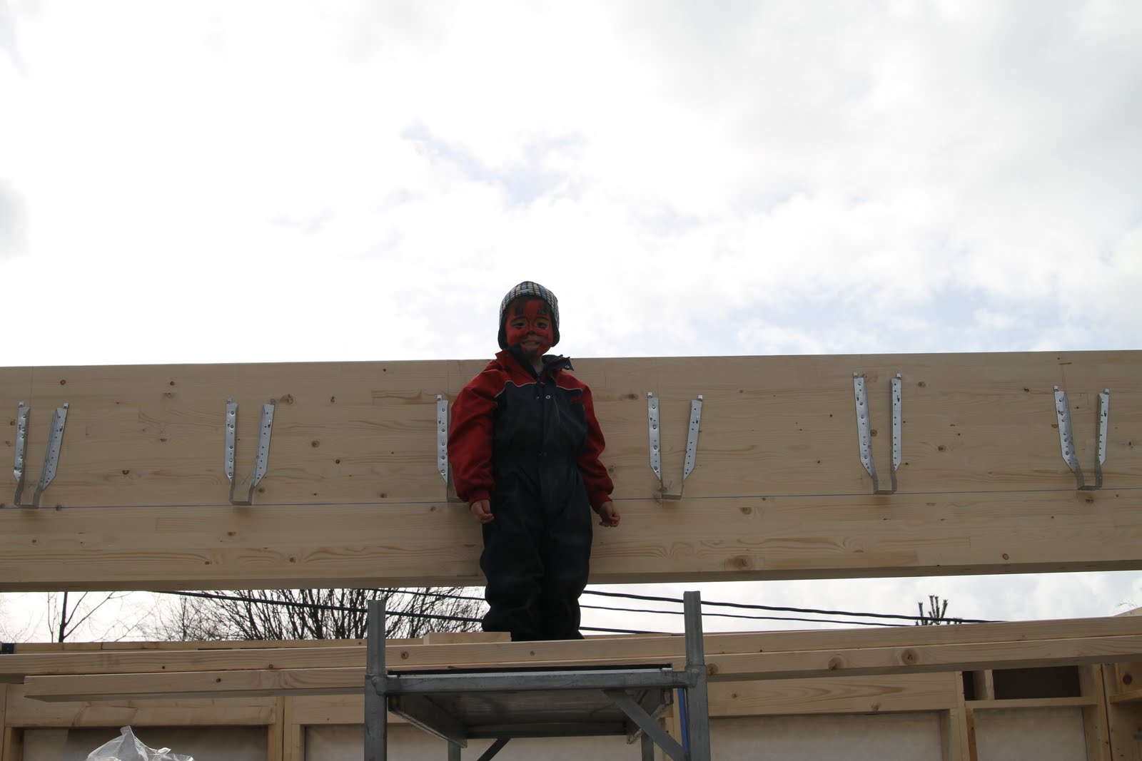 Marte ringte meg i 9 tiden og sa at de var i gang, og siden jeg gikk glipp av at første etasje ble heist på plass tenkte jeg at jeg absolutt ikke måtte gå glipp av andre også. Men jeg kom meg ikke fra jobb før nærmere klokken 10, og da var det allerede for seint. Klokken 10.03 kom jeg inn på plassen, men da var allerede hele andre etasje på plass og det var verken noen heisekran eller noen arbeidere der. Så da gikk jeg glipp av andre etasje også, og det var bare til å returne til jobben.
